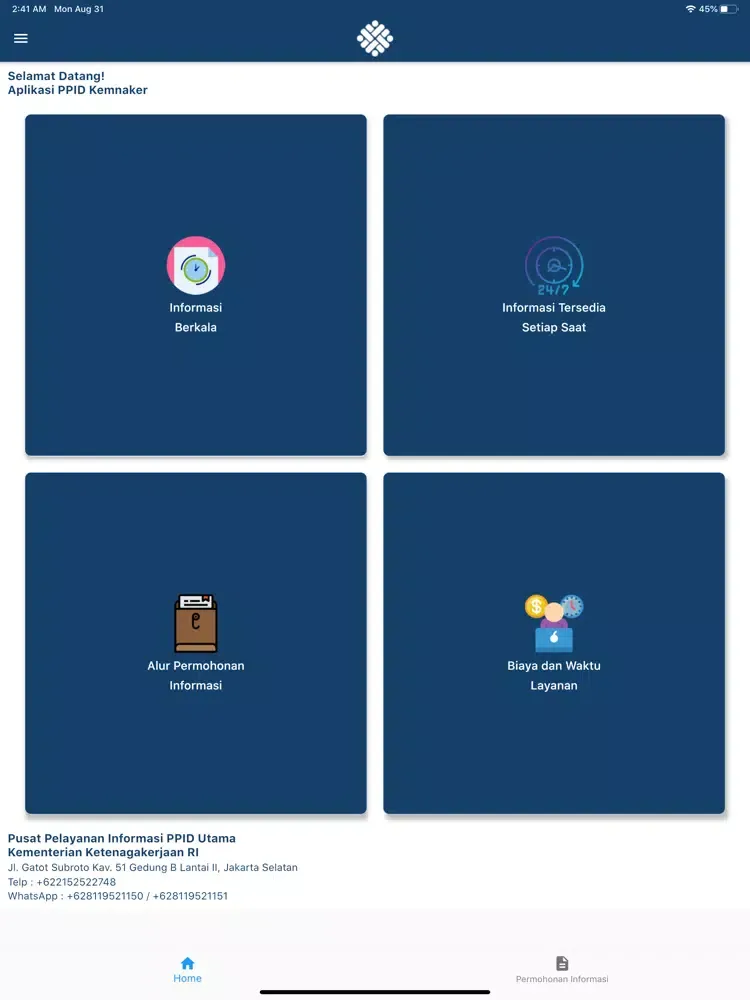 Layanan ini merupakan sarana layanan online bagi pemohon informasi publik sebagai salah satu wujud pelaksanaan keterbukaan informasi publik di Kementerian Ketenagakerjaan.