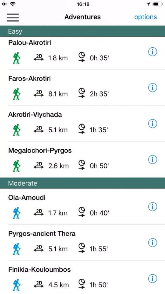The trails list includes easy and moderate hiking trails of a total length of 60 km. All routes of the recently signposted hiking network of Santorini are covered.