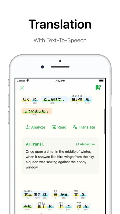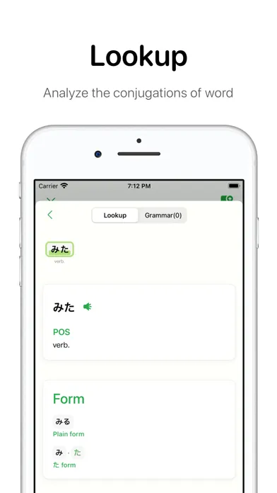 Oyomi is a Japanese "Grammar analyzer" and "Learning" App.