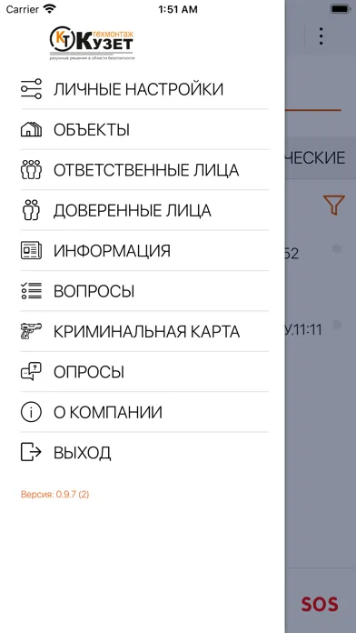 — просматривать список объектов и их состояние (на сигнализации, снято с сигнализации, тревога);