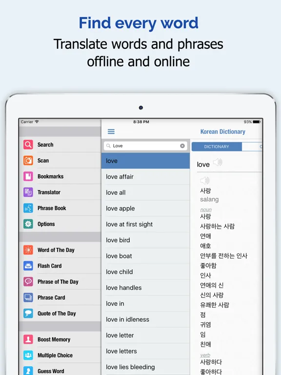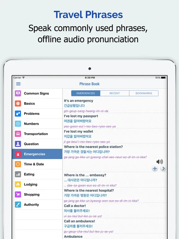 • Phrase book, Phrase of the day and Phrase Card helps to speak common phrases