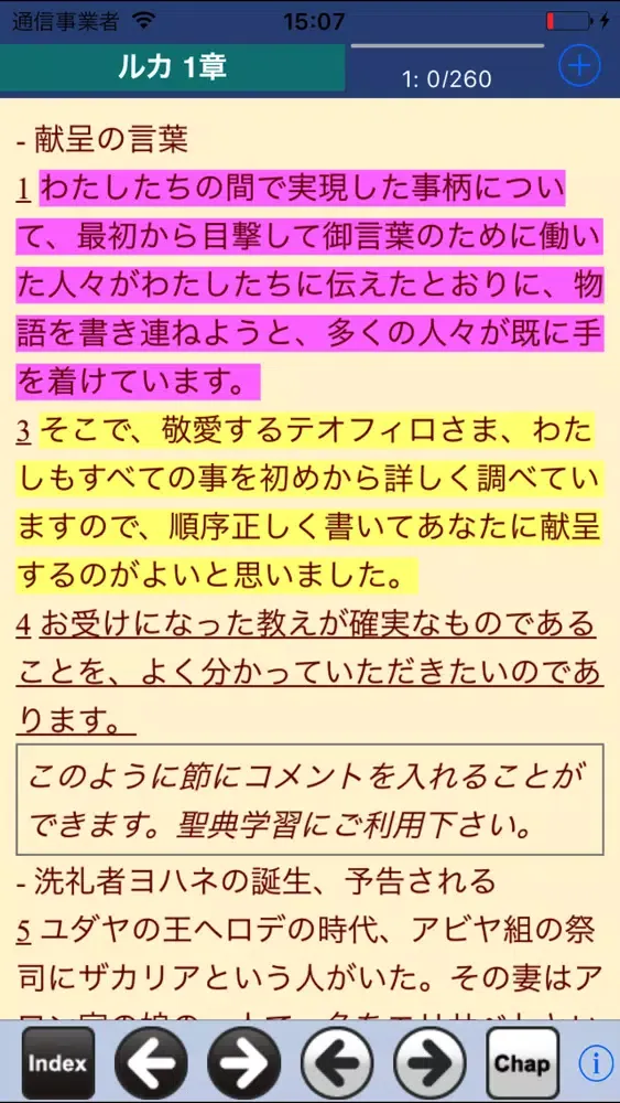 節に対して、下線やメモもつけられます。