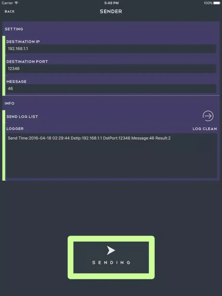 UDP Debugger iPad سکرین شاٹس
