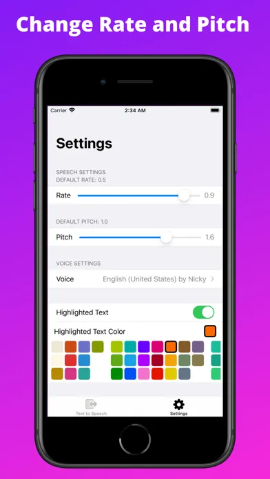 Text2Speech lets you find the perfect reading speed for you. With the customized rate and pitch feature, you can choose as slow or as fast a reading speed as you want.
