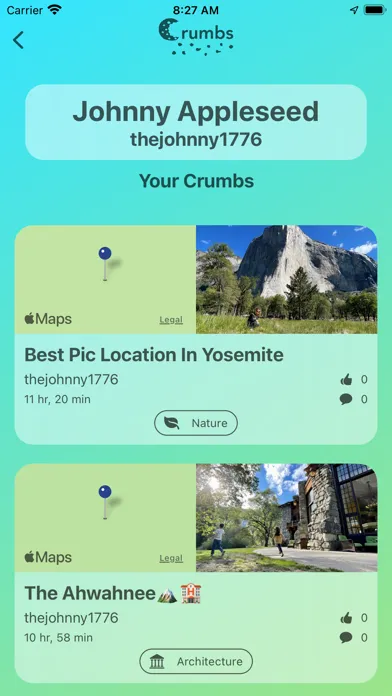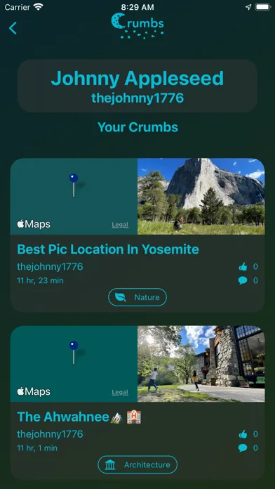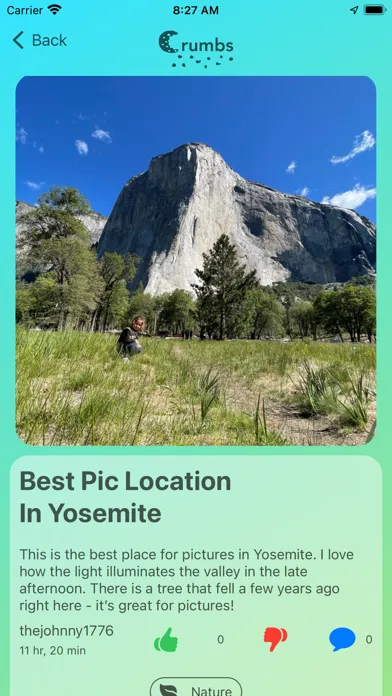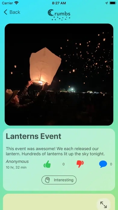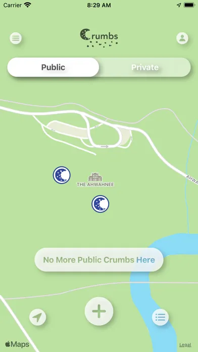 When you go places, the app will show you crumbs around you that others have dropped. You'll also be able to see private crumbs in the same location.