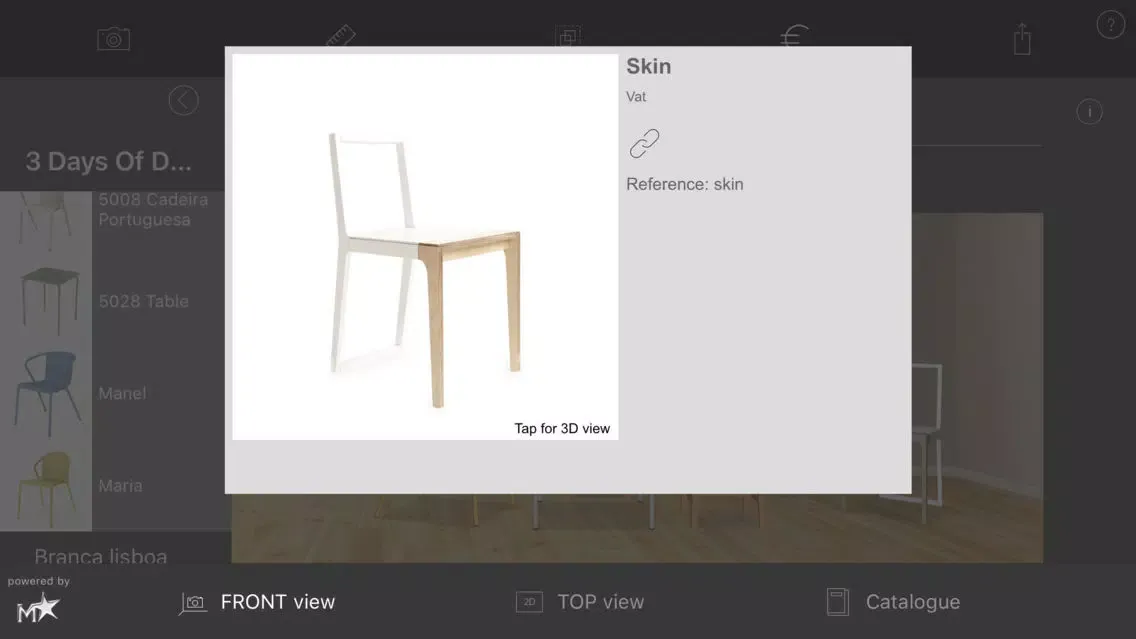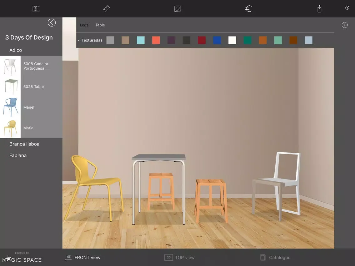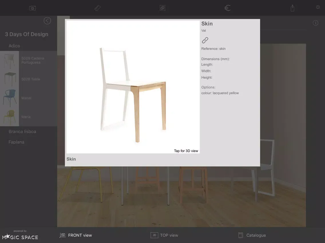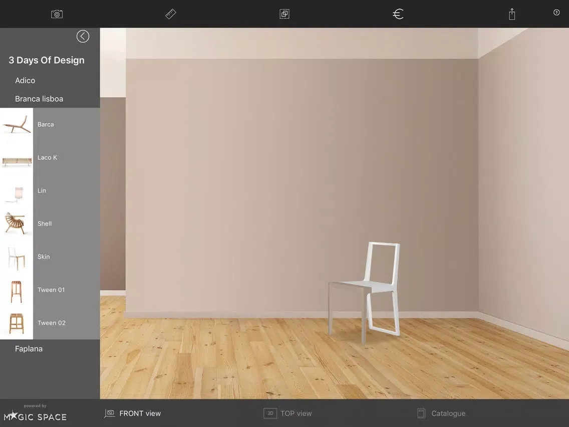Magic Space is virtual catalogue with the biggest brands in the world of furniture, such as Vitra, Cassina, Herman Miller, Artemide, MDFitália, Fritz Hansen, Artek, Knoll, Arper and many others. It allows vendors to try the parts, in real time, close to its customers.