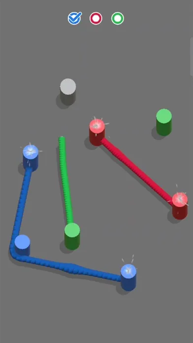 Drag and connect the rope from one pin to the other of the same color. If you pass over a different color rope, it may electrify & spoil your rope! Be careful and finish the level without cutting any ropes on your way!
