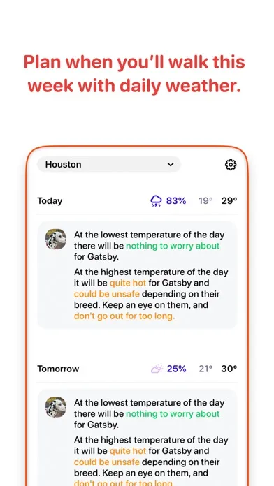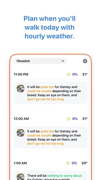 To make sure your doggo will be okay on their walk the app takes into account many factors such as: