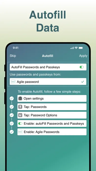 Integrate AgileVault seamlessly with your digital life. The app works with your browsers, apps, and devices to provide a unified and efficient password management experience. Agile Password supports popular platforms and ensures compatibility across your digital ecosystem.