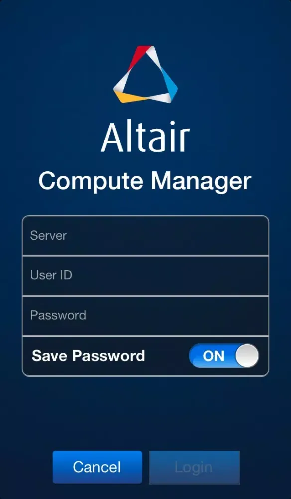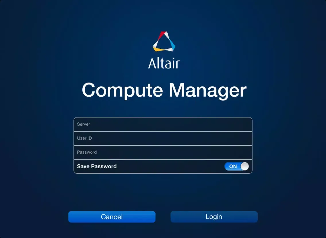 Ảnh chụp màn hình của Altair Compute Manager iPad