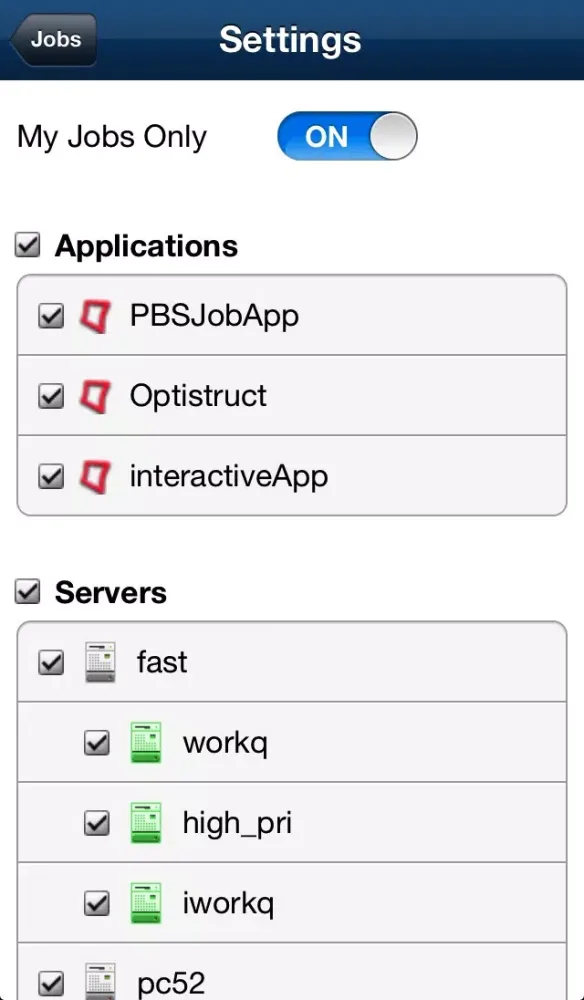 • Filter by server, application, job state and more