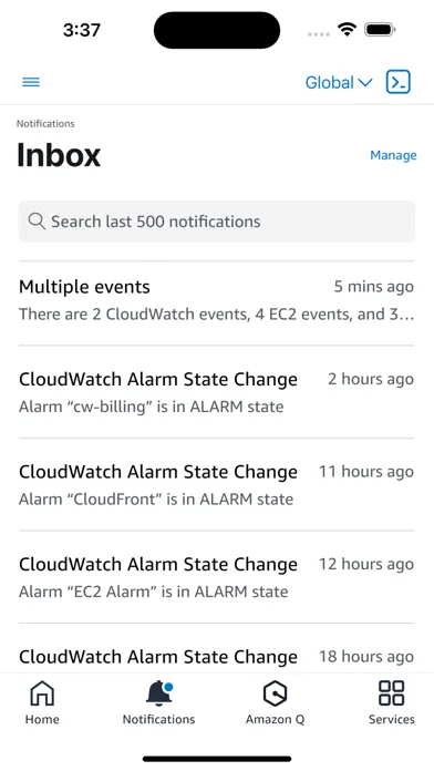 The AWS Console Mobile Application, provided by Amazon Web Services, lets you view and manage a select set of resources and receive push notifications to stay informed and connected with your AWS resources while on-the-go.