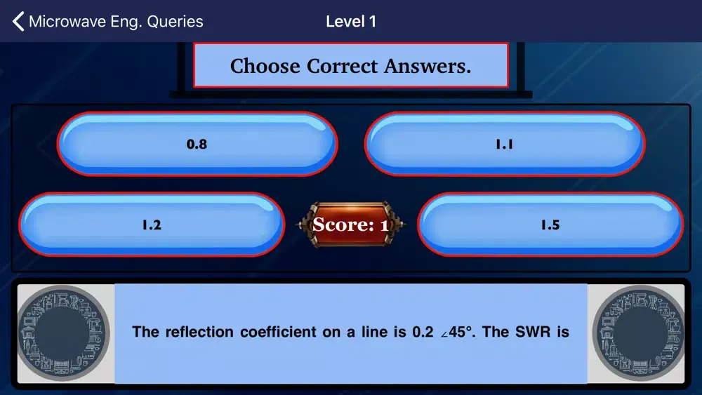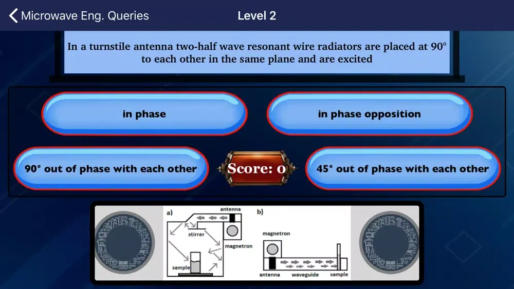 In each level of app, user will be given an image related to Microwave Eng. Queries and a question.