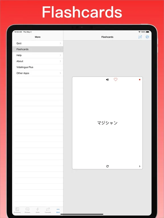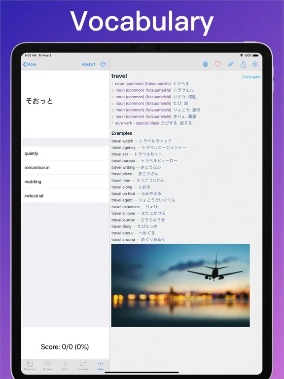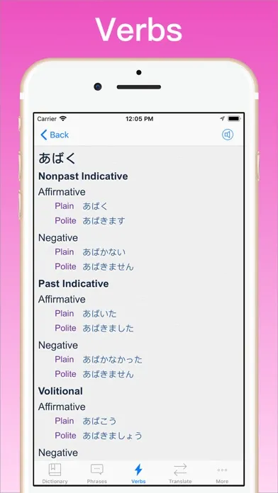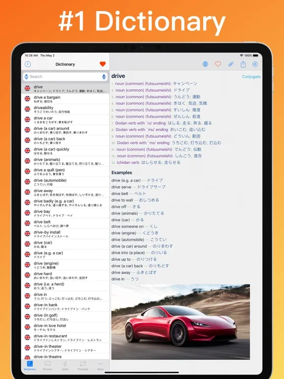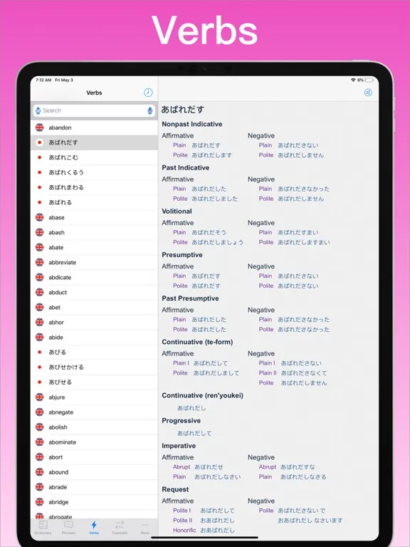 • Best verb conjugator of any app including 10,626 Japanese verbs, 4,318 English verbs. Over 1,094,292 verb forms in all!