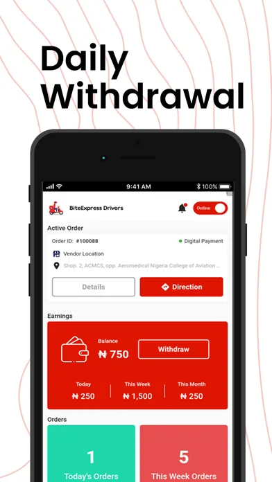 Welcome to the BiteExpress Driver App, your key to a flexible and rewarding delivery experience. Whether you're using a car, motorcycle, bicycle, or even your own two feet, our app empowers you to earn on your terms.