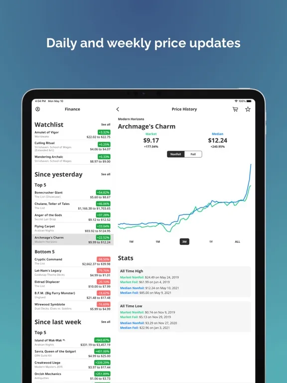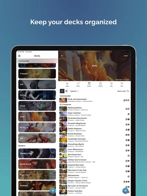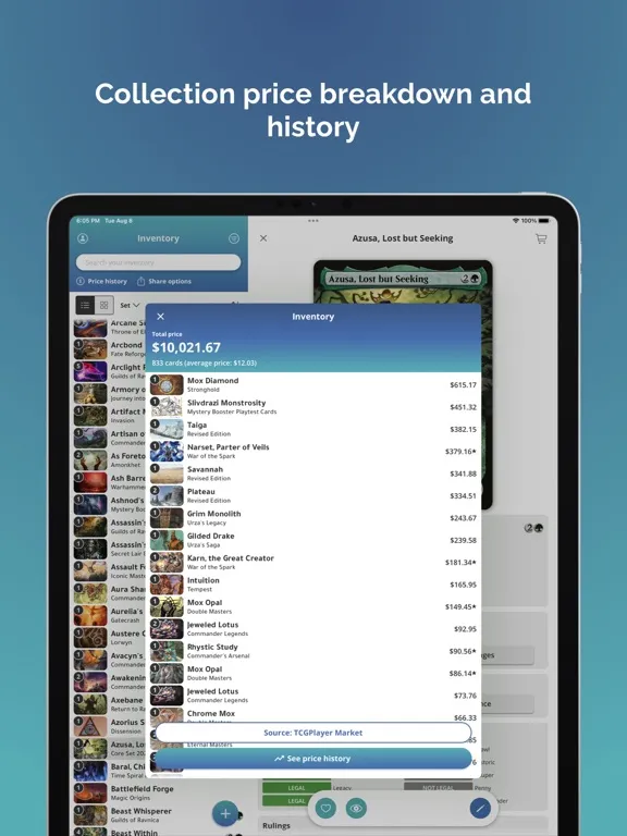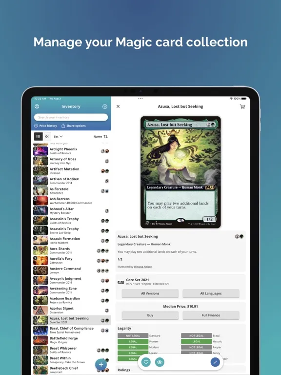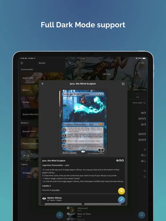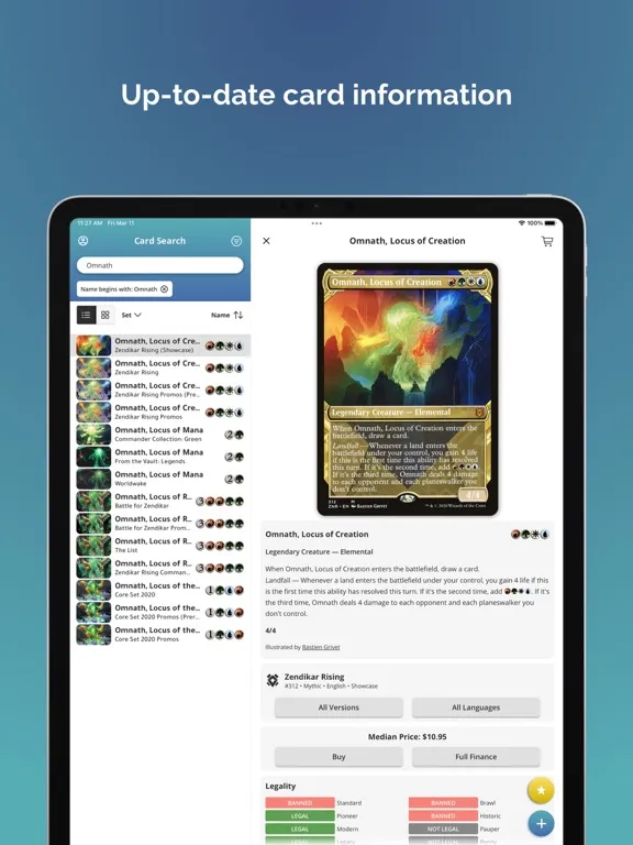 Cascade lets you create and playtest decks, manage your inventory, create custom lists, quickly look up card rulings and legalities, follow the latest spoiled cards and sets, and view daily and weekly card price updates. In addition, it offers the following features: