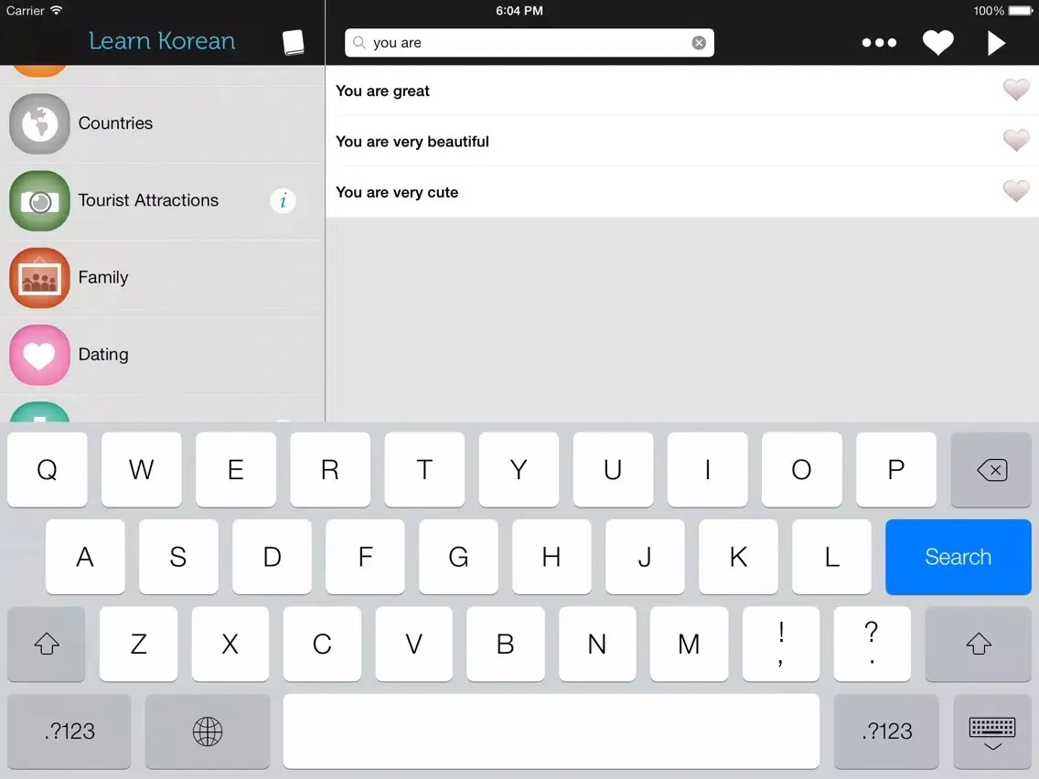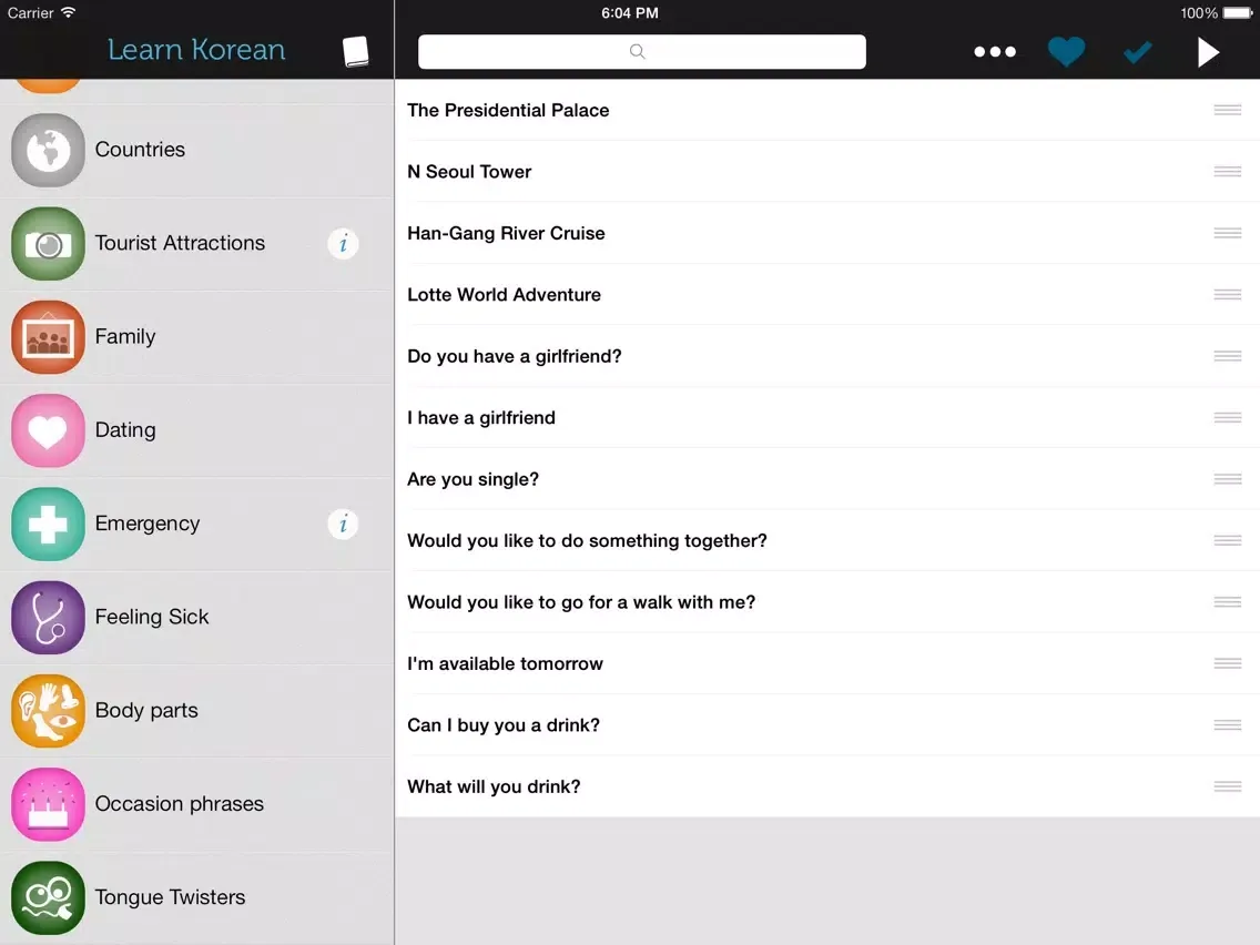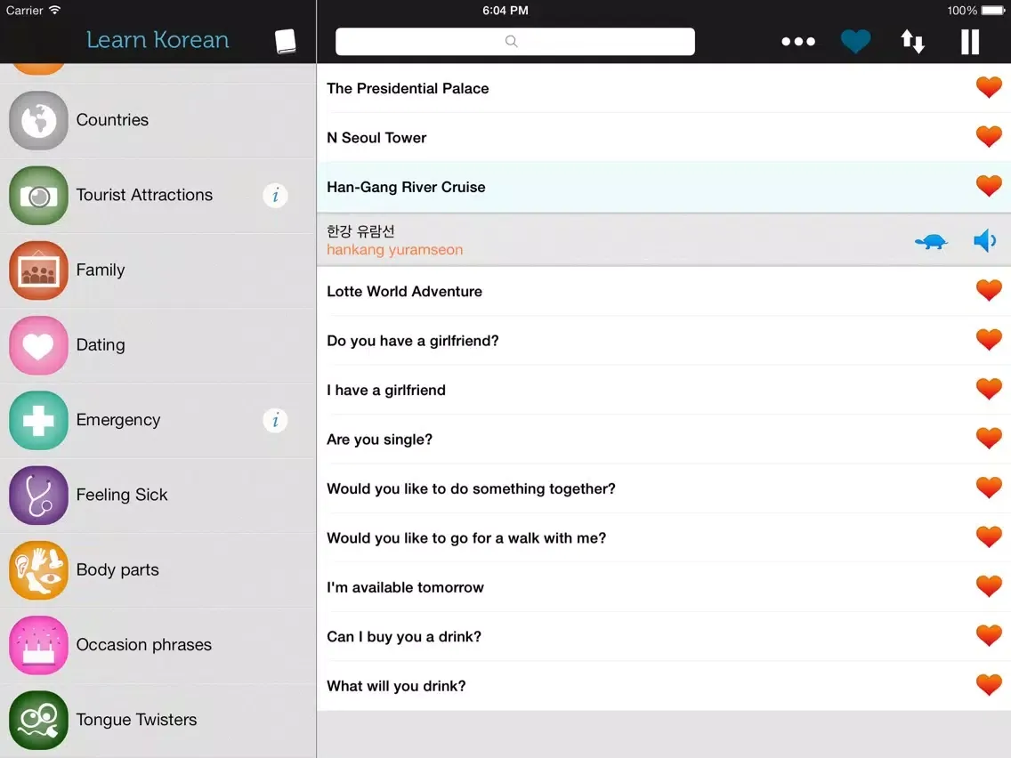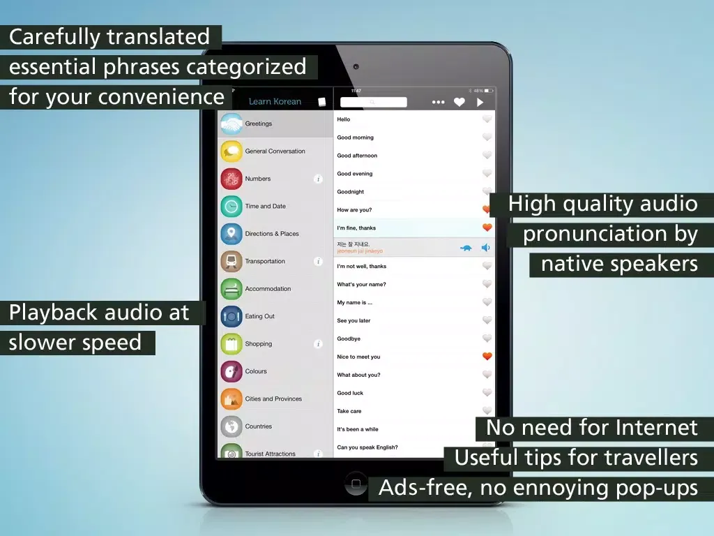 Ảnh chụp màn hình của Learn Korean HD - Phrasebook for Travel in Korea iPad