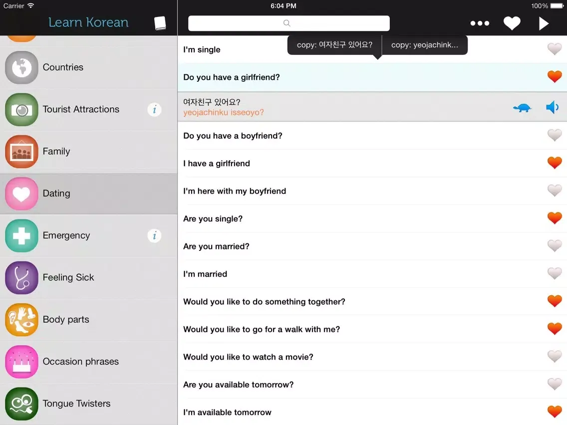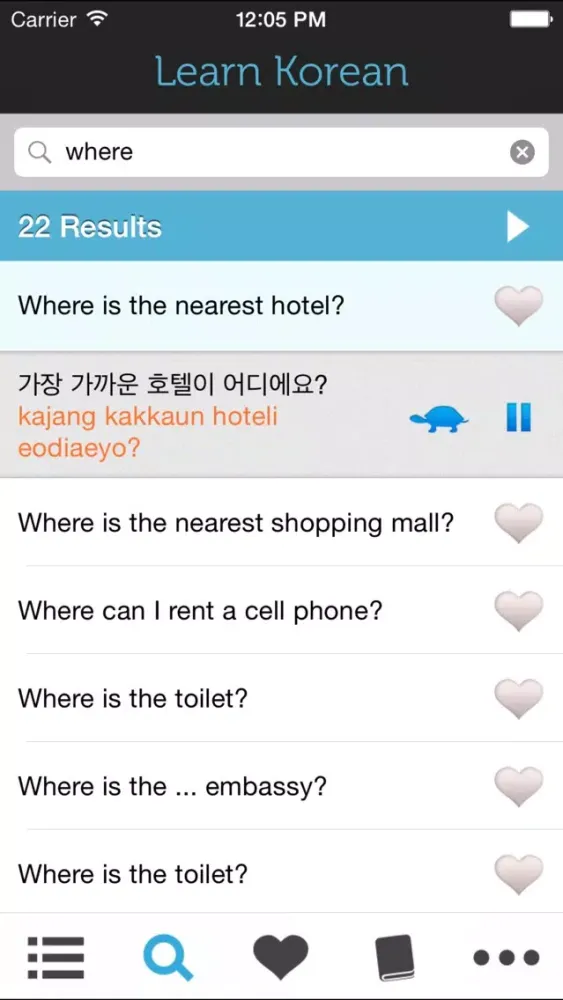 Ảnh chụp màn hình của Learn Korean HD - Phrasebook for Travel in Korea