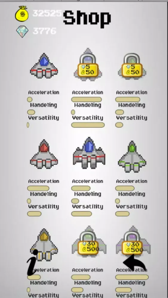 - Collect gems and coins to by new and better ships!