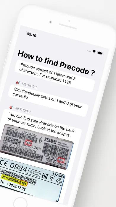 1. In Help tab, I described instructions to find Precode for your Renault car radio.
