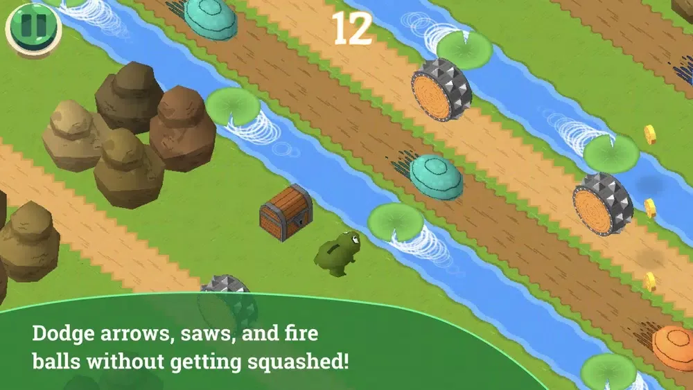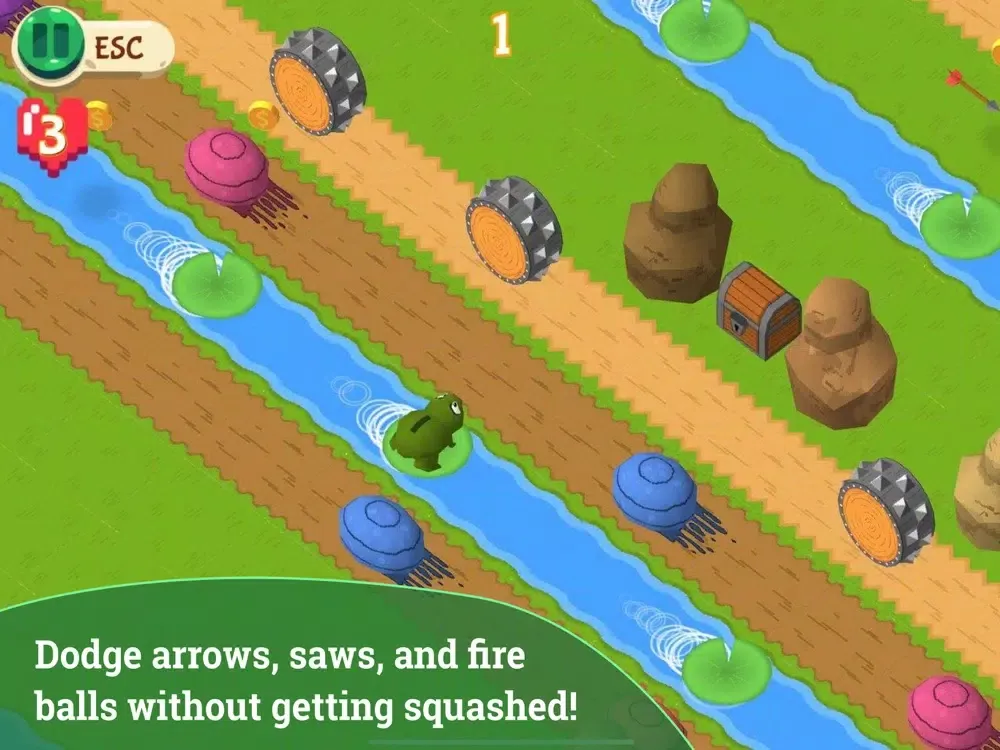 With your help, the frog and eight other animals can dodge challenges like arrows, saws and fireballs to get to the other side.