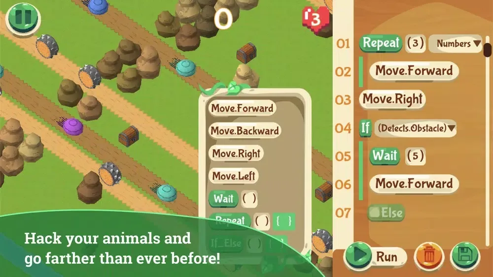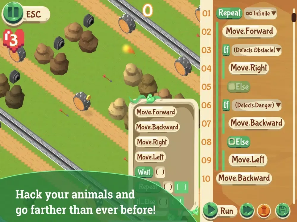 Avoid danger by proper coding and see all of your animals safely across the passage!