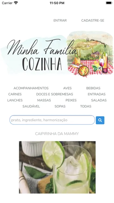 O aplicativo Minha Família Cozinha permite que qualquer usuário que baixar o aplicativo faça buscas e encontre deliciosas receitas, mas, além das receitas a proposta do aplicativo é que cada receita tenha uma história que envolva a família que criou a receita.