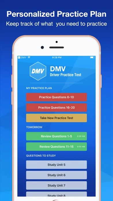 Our team of education professionals has crafted challenging practice questions and detailed explanations. 18 study units cover all the categories you need to practice for your DMV exam.