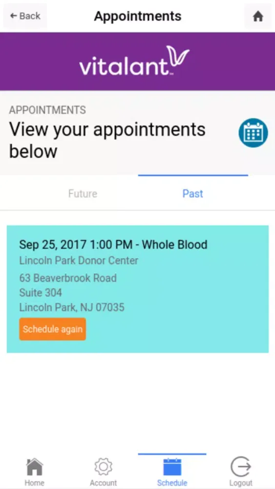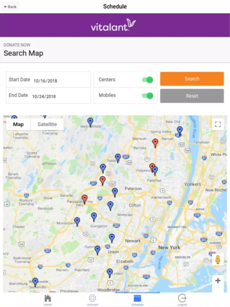 Ảnh chụp màn hình của Vitalant New Jersey iPad