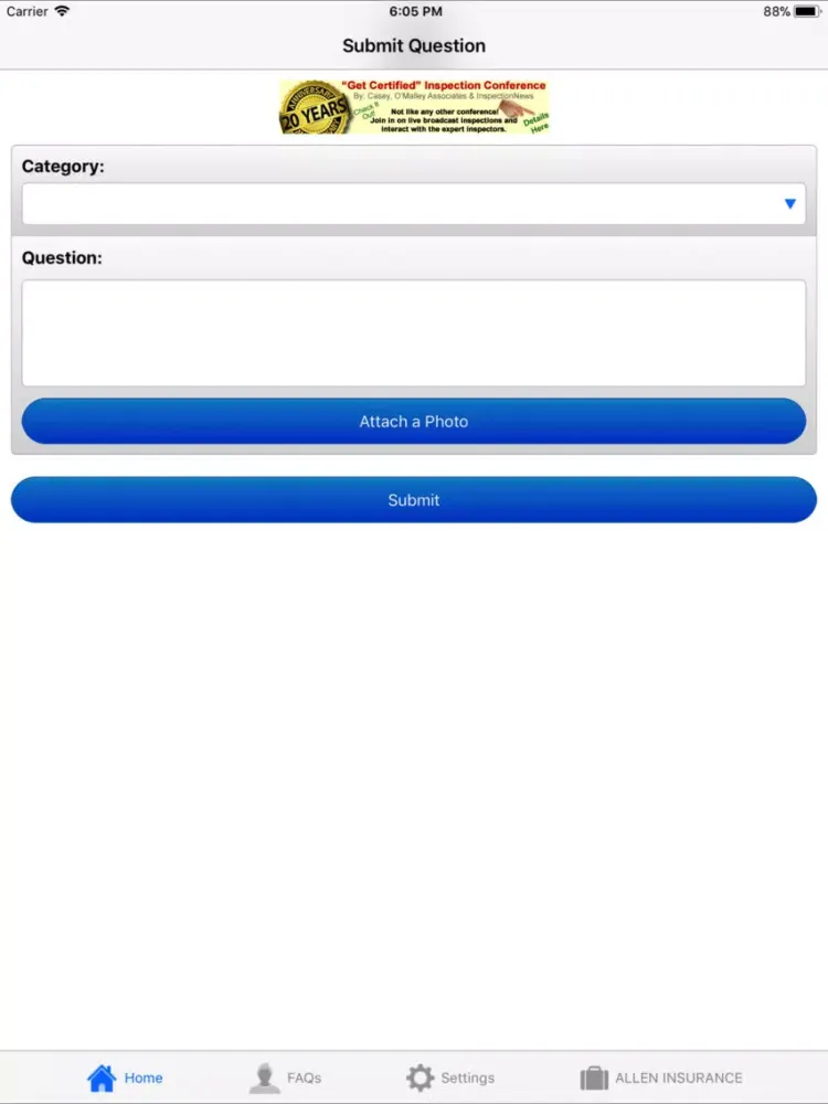 Get technical support from the most well-known names in the inspection profession, Casey, O'Malley Associates. This app provides you access to a team of inspectors, authors and technical minds that have never been available before. Simply select the system or component you are looking at: (electrical, plumbing, heating, foundations, etc.) enter your question and take a photo if you like and hit submit. Typically within minutes but no later than 2 hours the HON Pro Support team will respond with an answer. We help you look like a professional and provide back up support for your inspection service.
