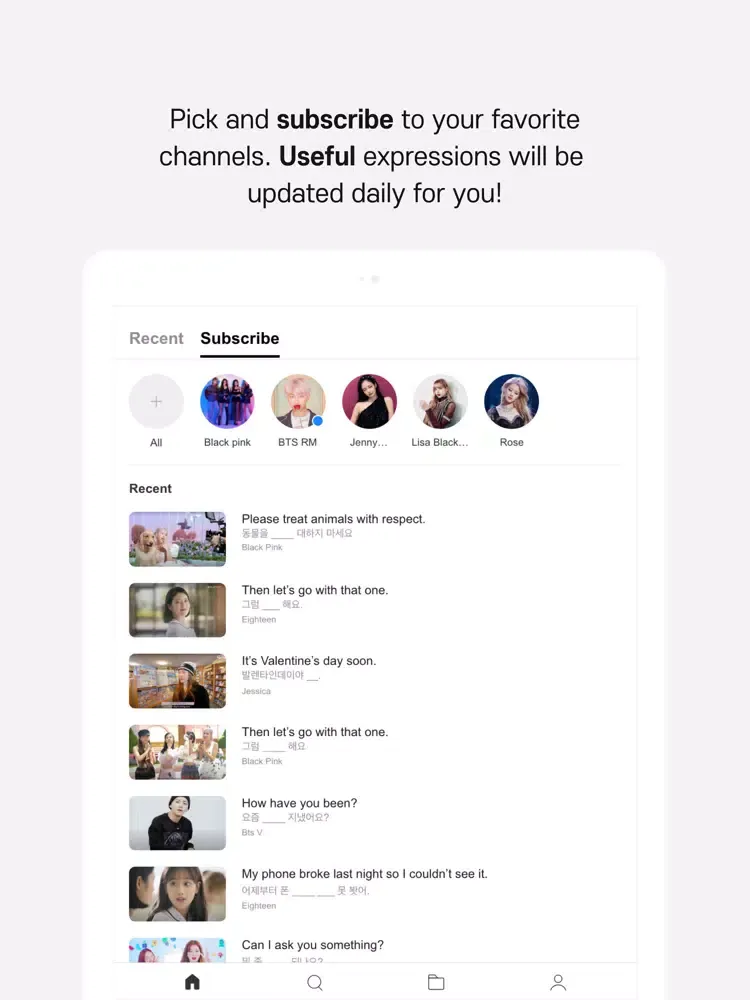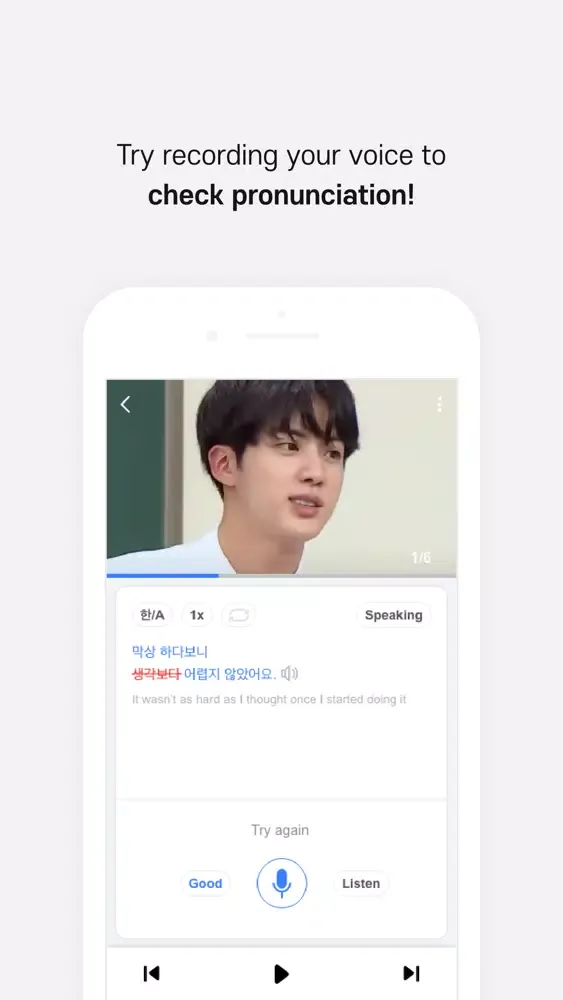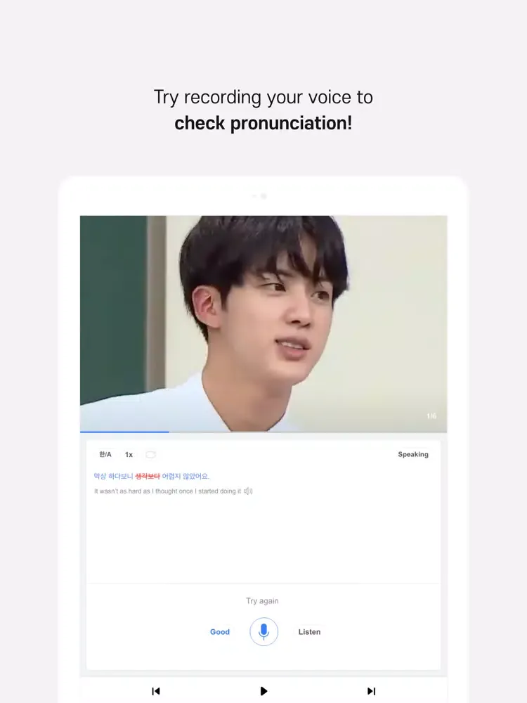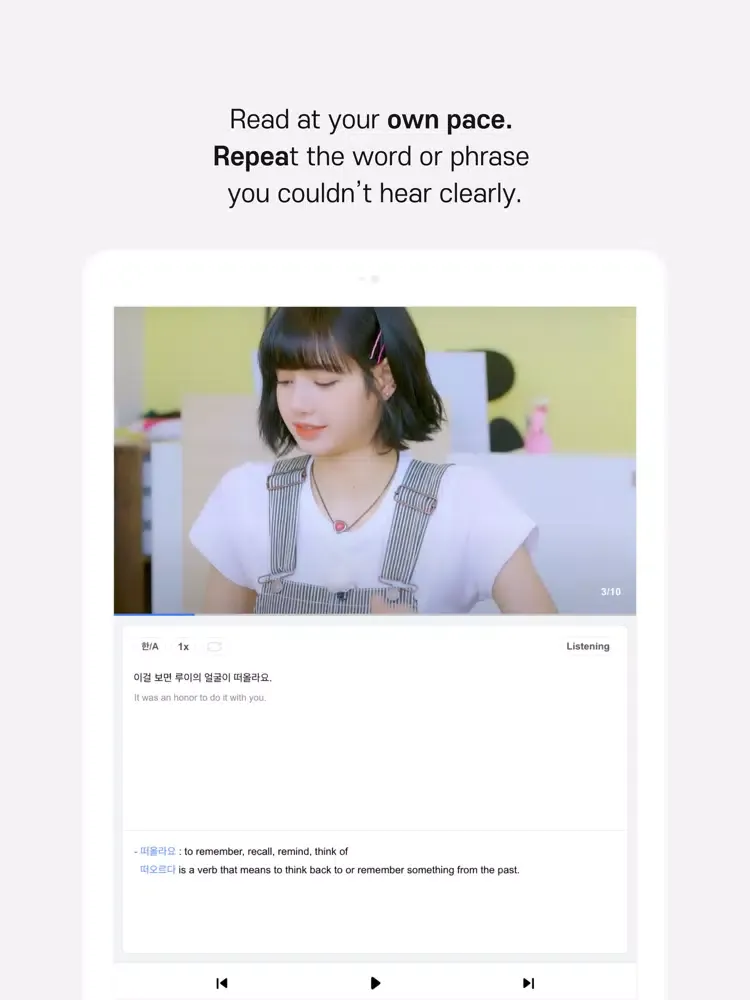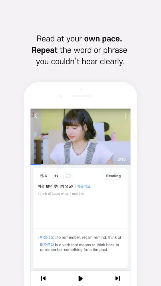 ● Featuring the most efficient tools to learn Korean - repeating expressions, altering pace, and recording your own voice to check pronunciation! You can also bookmark videos if you want to revisit them in the future.