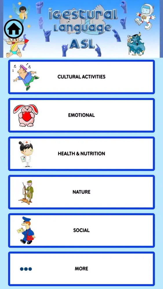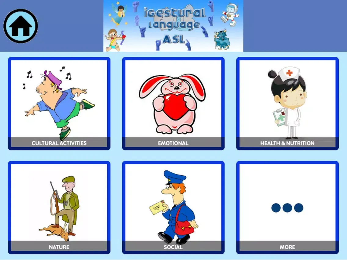 This Application has many galleries and games for helping to learn the The ASL language. The initial download includes the gallery of the ASL alphabet with sound.