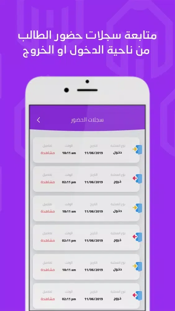 - مشاهدة جميع سجلات الحضور وحالات الدخول والخروج من المعهد وبكل اوقاتها واسبابها