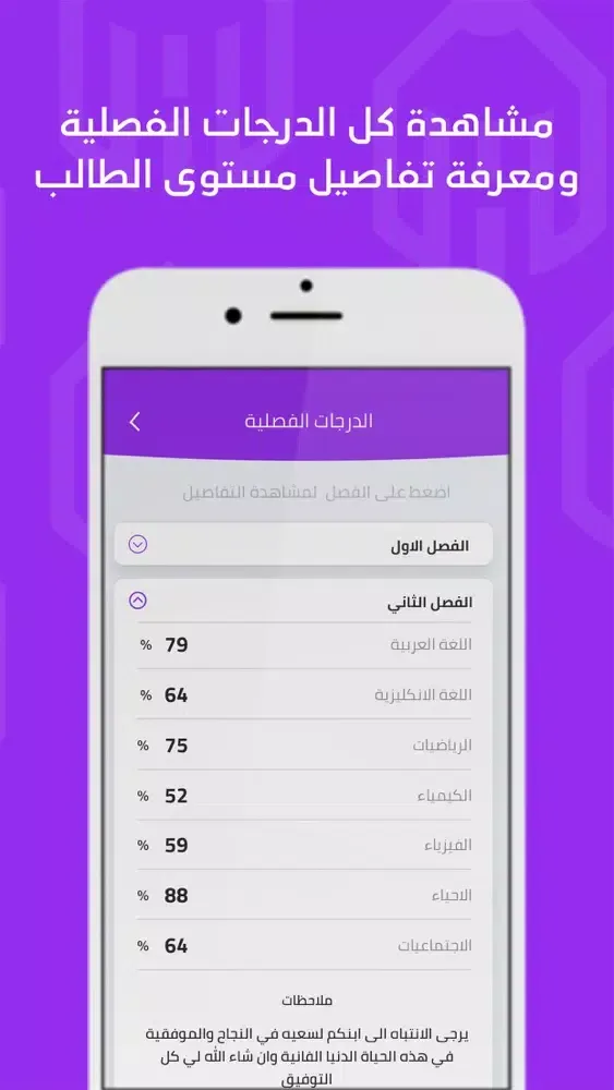 - امكانية مشاهدة الدرجات الفصلية لكل درس من الدروس الموزعه في المعهد