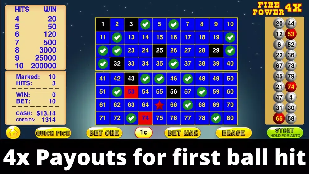 This Keno Fire Power 4X Game has the highest Keno 80 Odds!