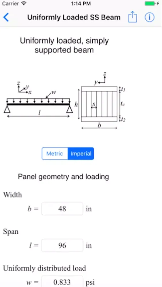 • Various beam and loading types are analysed, using Metric or Imperial units.