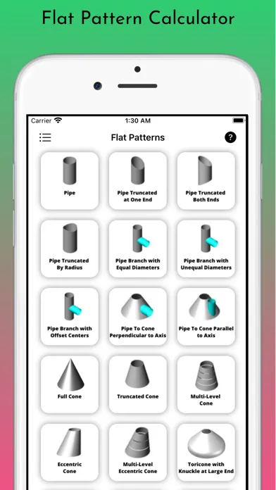 Flat Pattern Calculator is Tool for All Types of Widely used fabrication shapes Such as Pipe, Truncated Pipes, Pipe Branch Connections, Pipe to Cone Intersections, Cone, Truncated Cone, Eccentric Cone, Tori Cone, Multi-Level Cone, Square to Round, Rectangular to Round, Round to Square, Round to Rectangular, Pyramid, Truncated Pyramids, Sphere, Dish ends, Miter bend, Fabricated Bend, Cut Bend, Screw Flight etc.