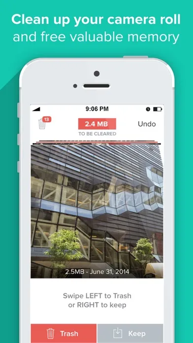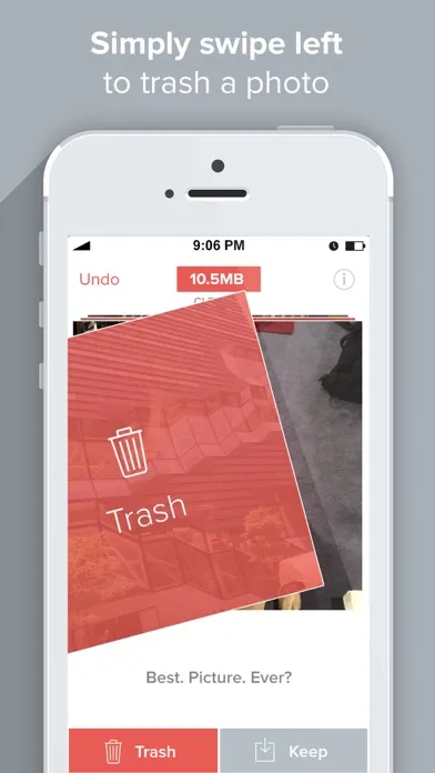 Clean up valuable storage memory on your phone by easily deleting pictures from your camera roll with ease. Just swipe left to delete, right to keep. Easy swipe deletion is 5x faster than deleting from camera roll and more fun!