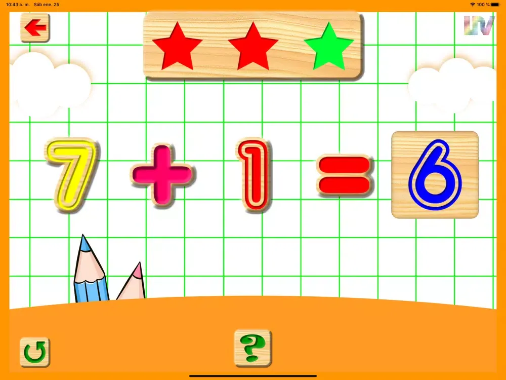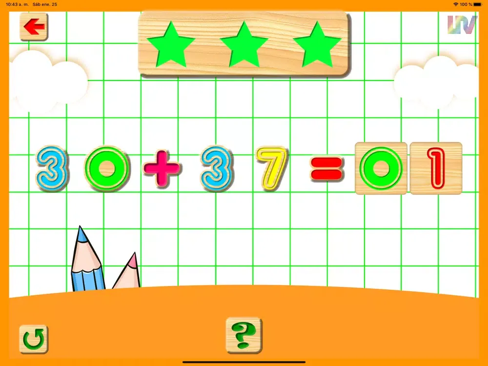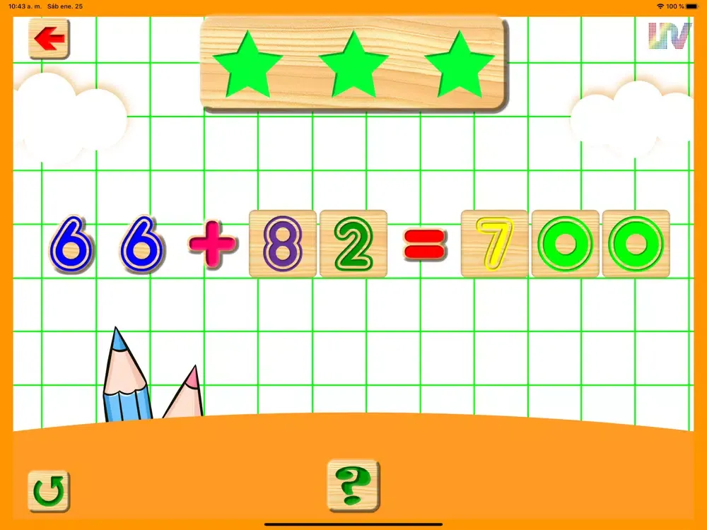 · Difficult: The numbers are multi-digit and you should look for one of the operators and the result. (This is a very difficult level for the little ones, dare the parents?).
