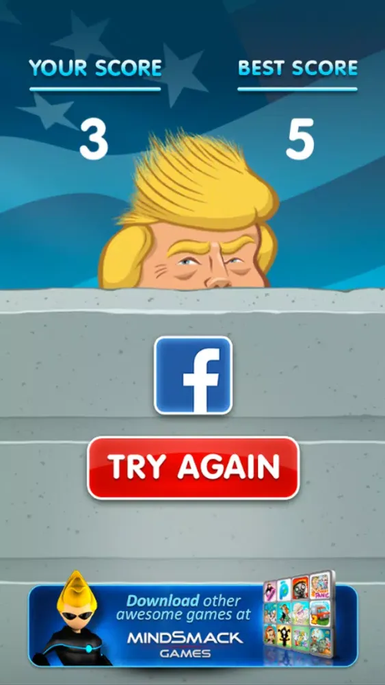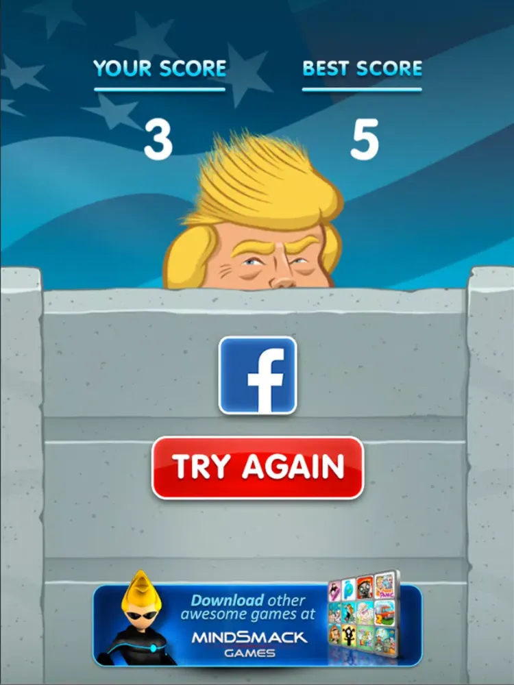 Tap, tap, tap like there is no tomorrow! Can you get Trumpie past 30 obstacles? Fly with your huuuuuge hair thru Hillary, Cruz & Palin!