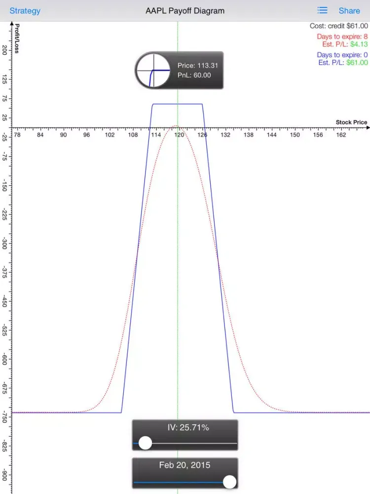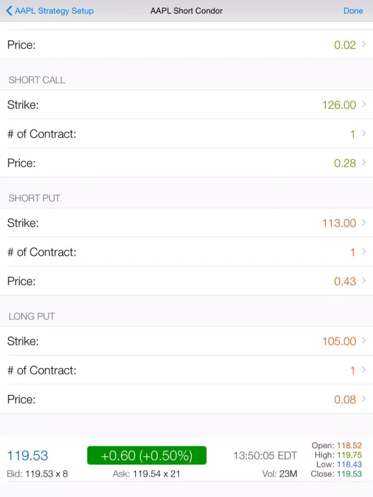 Ảnh chụp màn hình của Option Strategies Iron Condor iPad