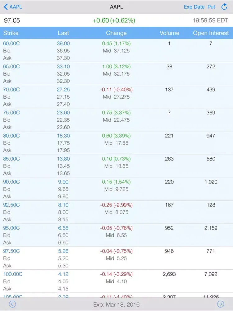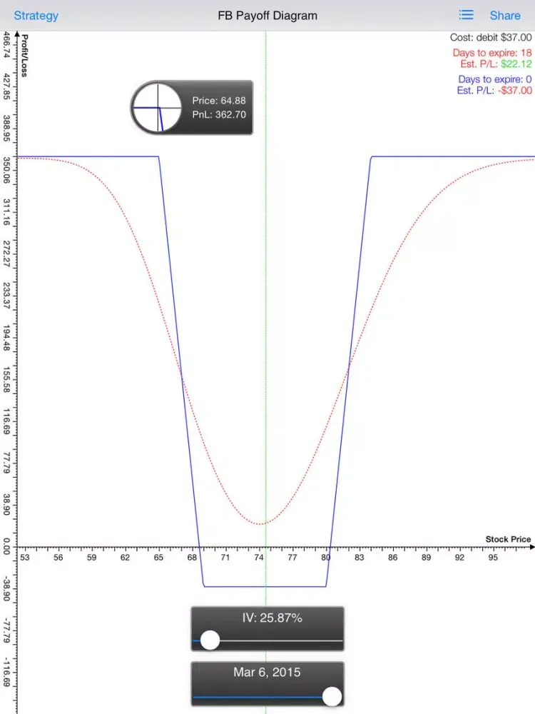 This app is very powerful in helping you make right decisions in options trading. It helps you watch the market through visualized market information and visualize your risk/reward of the option strategy. Using the Black-Scholes model to price options, Condor Free draws / visualizes the payoff of options strategies and clearly presents how time decay impacts strategies. Play with the IV Slider and the Date Slider to watch the impact and evaluate your strategy further more. Also enjoy the dynamic, lightening fast, near Real-Time options chains.