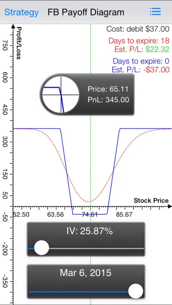 Creating, reviewing, and sharing your options strategies are so easy! Just follow our clear on-screen guidance. You can conveniently modify the strategy according to your own needs, like edit the strike price, change the contract number, etc. With a few clicks and you are all set! Your strategies are automatically saved for further review / research. You can then study the strategy payoff diagram and observe the time decay impact through multi-touch features like pinch-to-zoom, double-touch-reset, two-finger-move, etc. Pressing one finger on the chart for a short moment, you can also bring out a magnifier for precise chart reading. Share the strategies easily by email with just one simple tap!