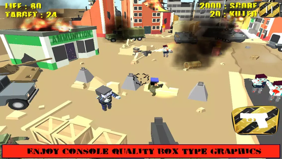Crazy army troops got charge to fight against zombies and you are in charge of one of those troops.