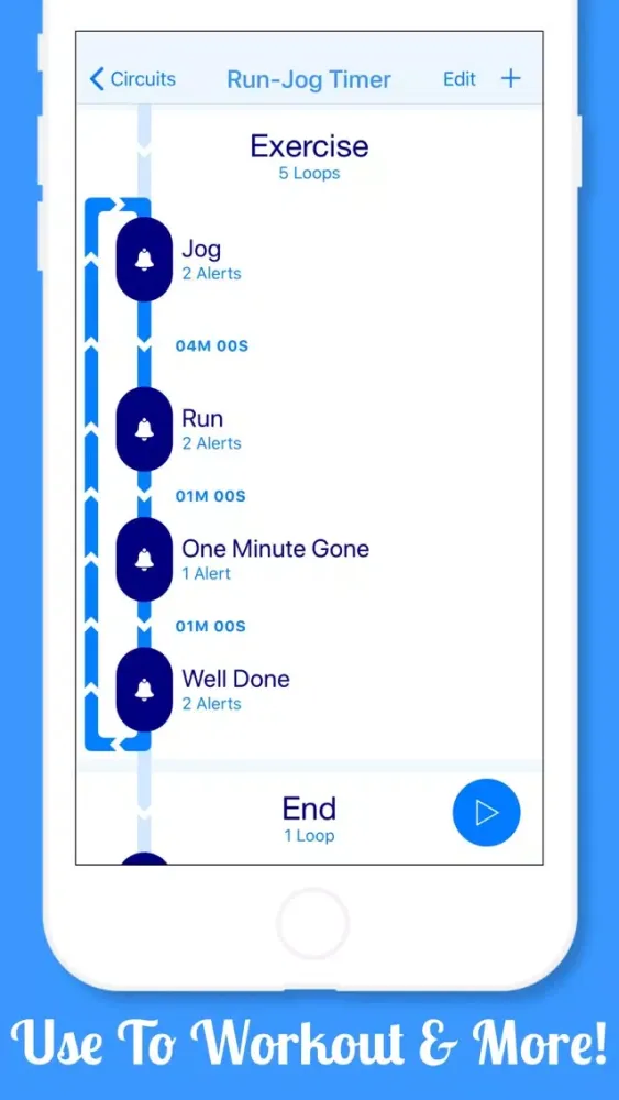 Create chains and loops of timers out of time intervals and loops. Use sound effects or custom spoken alert notifications, which automatically play above any other audio or music you may be listening to.