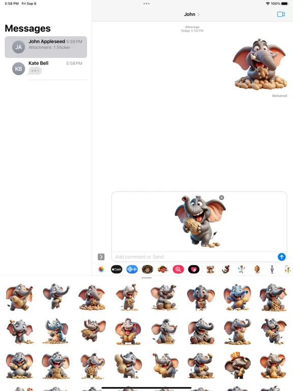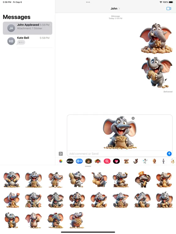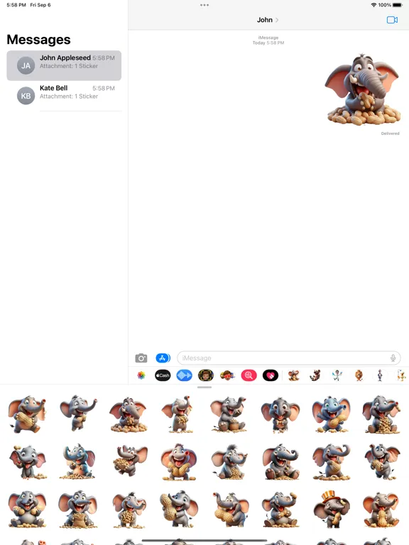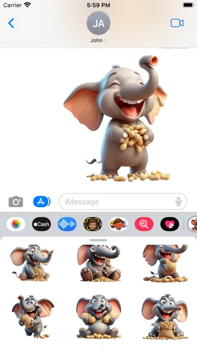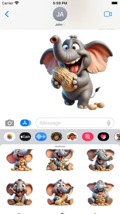 Set of elephant peanut stickers for your iMessage conversations.