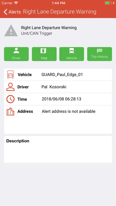 Receive alerts with priority level, linked to vehicle and driver, and viewed on map