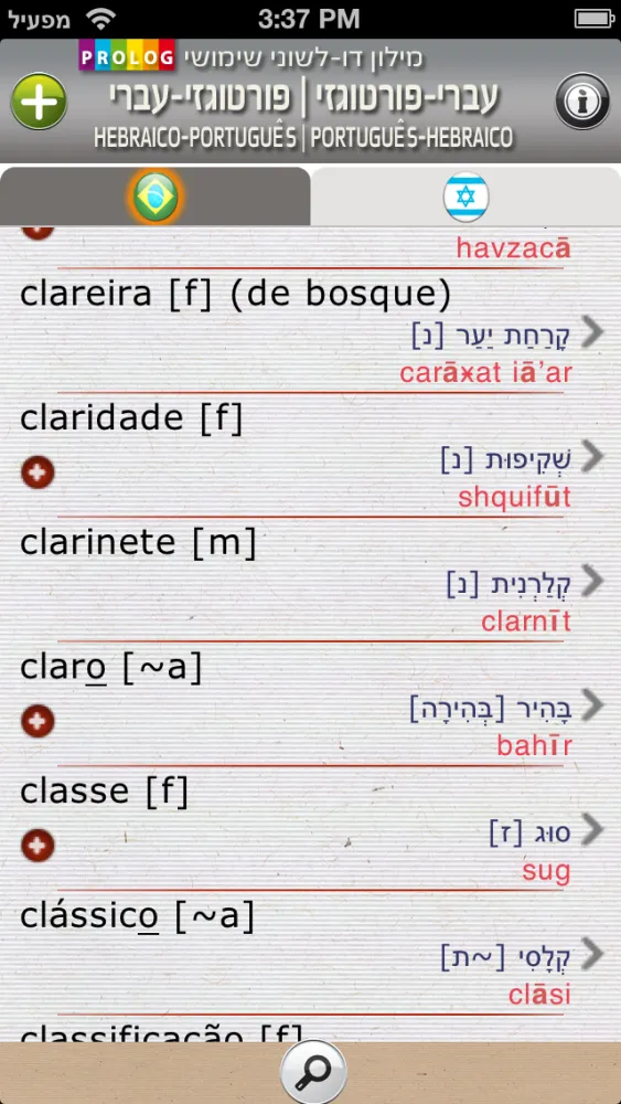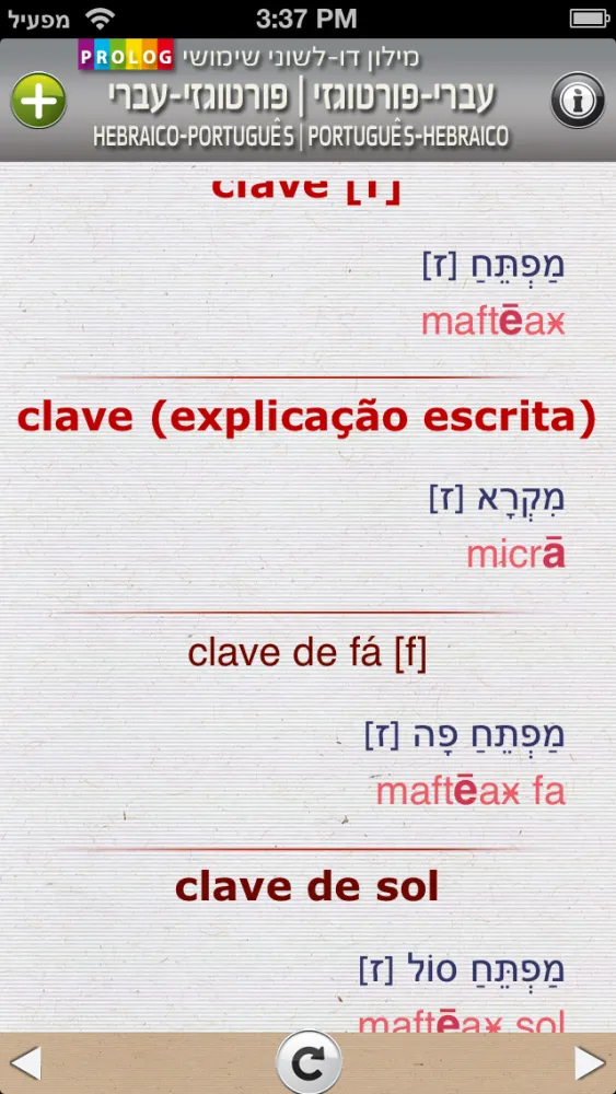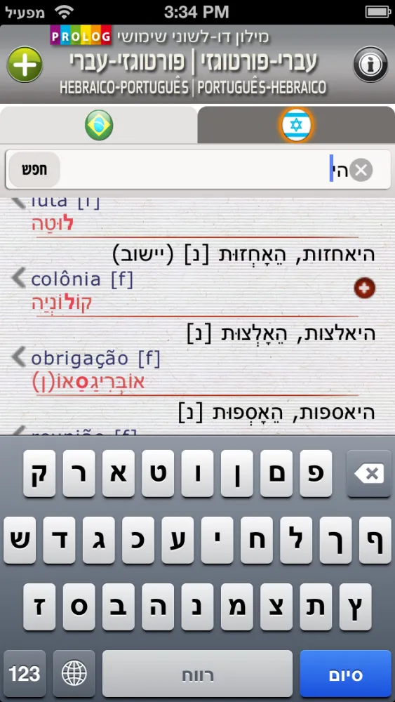 Ảnh chụp màn hình của HEBRAICO-PORTUGUÊS v.v. Dicionário Prático Bilíngüe | PROLOG / eTeacher