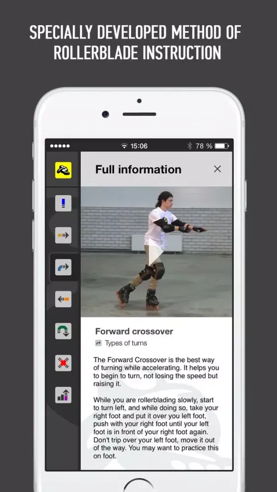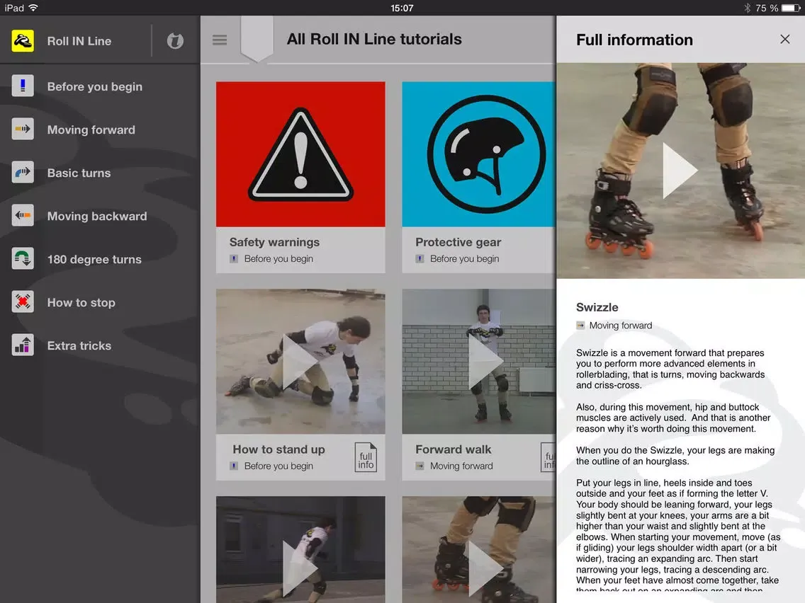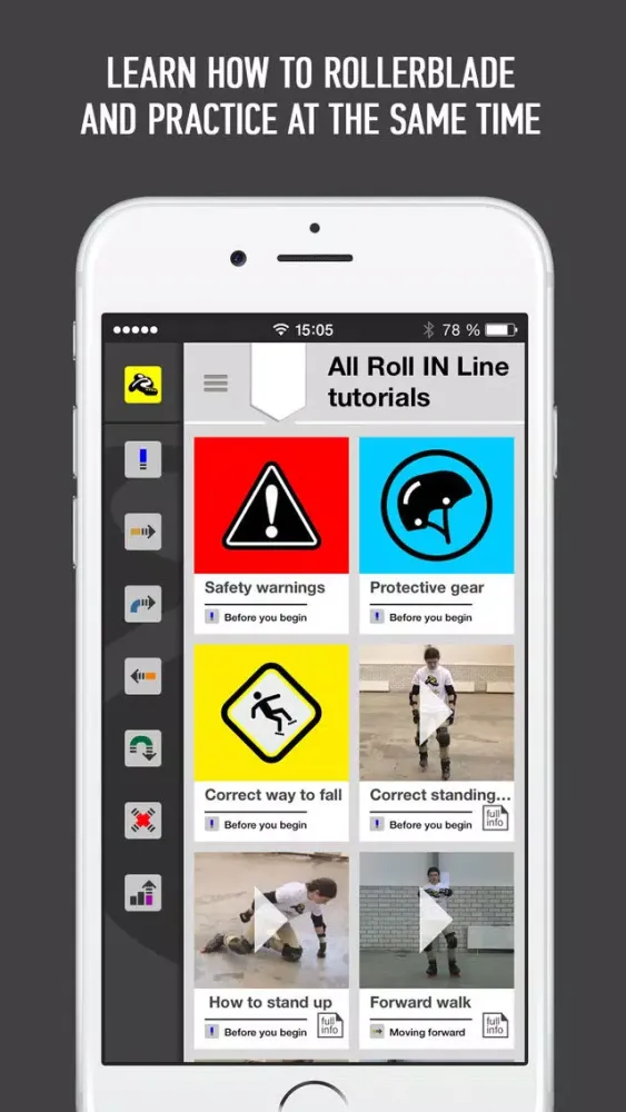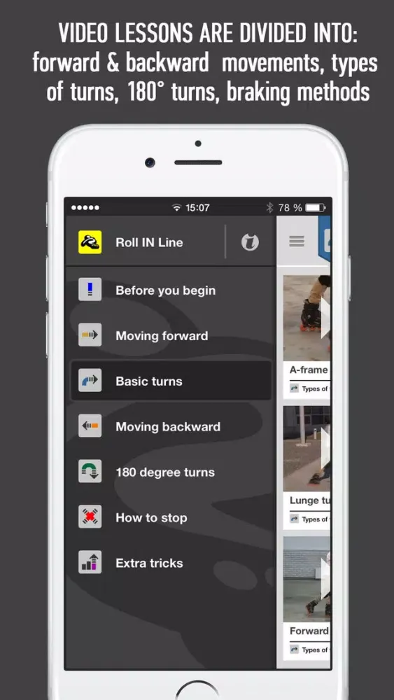 In "Roll in Line" we have created a special teaching method that will help you easily, quickly and effectively master the basic elements of in-line skating. With the help of “Roll in Line INSTRUCTOR” video lessons, you will be able to reach the Intermediate skill level and even higher.