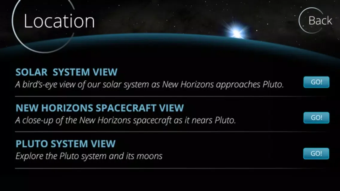 Location: Provides interactive views on the latest position of New Horizons. Get a bird’s-eye view of our Solar System as New Horizons approaches Pluto and Ultima Thule. Rotate around a detailed 3D model of the New Horizons spacecraft, explore the Pluto system and its moons. Find Pluto in the sky from your home location, or even fly through some of the objects in the Kuiper Belt.